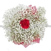 Уменьшенный: роза красная - 1 шт, гипсофила - 3 шт, фетр розовый.