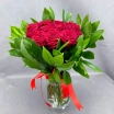 25 роз: роза красная (70см) - 25 шт., рускус (или салал/ малина/фисташка) - 13 шт., упаковка, лента.